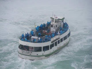 When we got to the Falls, We did the "Maid of the Mist" boat ride which takes you right to the foot of the falls and soaks you! The Mist feels like rain, it's so strong. I really enjoyed it.